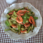 香芹、大虾、辣椒、油、盐、味极鲜酱油、葱、姜。