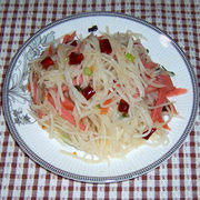 白萝卜、火腿、油、盐、葱、姜、红辣椒、味精。