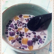 芋圆、蜜红豆、黑珍珠、甜汤、椰粉。