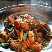 土鸡、胡萝卜、八角、干辣椒、草果、桂皮、香叶。