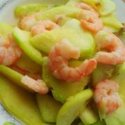 西葫芦、虾仁、葱姜、鸡蛋、料酒、盐、淀粉。