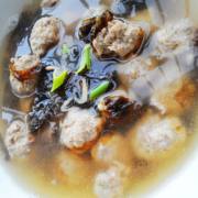 肉馅、葱、姜、料酒、盐、胡椒粉、老抽、鸡蛋、淀粉、虾皮、紫菜、鸡精、香油。