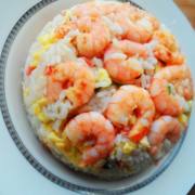 剩米饭、虾仁、火腿、鸡蛋、盐、鸡精、料酒。