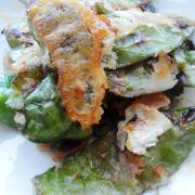 虾仁、酥炸粉、料酒、盐、葱姜、鸡精。