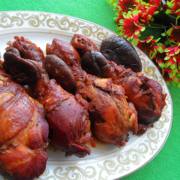 鸡腿、水发香菇、木耳、葱姜蒜、老抽、生抽、盐、大料、白糖、桂皮、料酒。