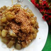 茄子、蒜、姜、甜面酱、熟芝麻。