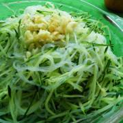 挂面、熟花生、酱油、醋、辣椒油、蒜、白糖、芝麻酱、香油、葱末。