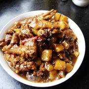 童子鸡、土豆、葱、姜、蒜、八角、红尖椒、醋、料酒、生抽、老抽、盐、糖、淀粉、鸡精。