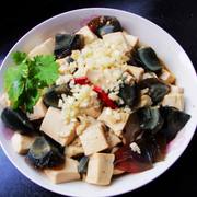 皮蛋、豆腐、红尖椒、蒜瓣、葱、姜、醋、盐、生抽、蚝油、食用油、麻油。