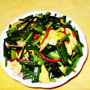 土韭菜、草鸡蛋、盐、鸡精、食用油。