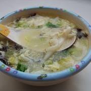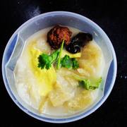 油炸干猪皮、冬瓜、木耳、香菜、蛋饺、肉丸、盐、葱、姜、鸡精、食用油。