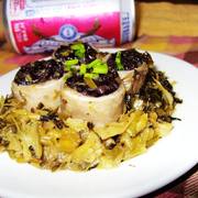 猪大肠、血糯、雪菜、淀粉、食用油、盐、醋、糖、蚝油、生抽、鸡精。