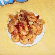 基围虾、红干椒、大葱、香葱、蒜瓣、姜、盐、生抽、蚝油、鸡精、食用油。