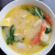 里脊肉、番茄、小青菜、鸡蛋、葱、姜、淀粉、盐、生抽、醋、鸡精。