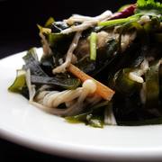 海带、金针菇、胡萝卜、香菜、蒜瓣、干红椒、葵花油、香油、生抽、醋、盐、糖、蚝油、鸡精。
