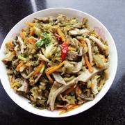猪肚、雪菜、胡萝卜、芹菜、盐、醋、淀粉、食用油、生抽、鸡精、糖。