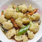 菜花、胡萝卜、青椒、葱、姜、蒜、蚝油、食用油。