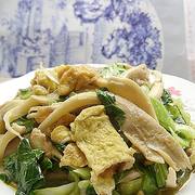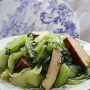 香干、小油菜、葱、姜、蒜、盐、鸡精、食用油。