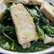 老豆腐、蓬哈菜、葱、姜、蒜、盐、鸡精。