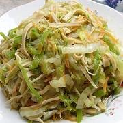 大白菜、千张、胡萝卜、青椒、葱、姜、盐、鸡精、食用油。