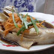 鲈鱼、胡萝卜、姜丝、大葱、料酒、胡椒粉、蒸鱼鼓油、麻油。