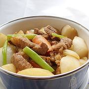白萝卜、猪肉、胡萝卜、葱、姜、淀粉、食用油、盐、生抽、老抽、麻油、料酒。