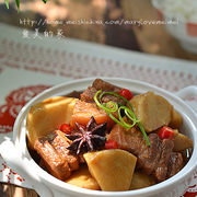 五花肉、小芋头、色拉油、老抽、冰糖、生抽、料酒、八角、鸡精、生姜、大蒜、香叶、盐。