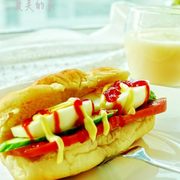 高筋面粉、鸡蛋、奶粉、即发干酵母、黄油、水、香肠、沙拉酱、香葱、细砂糖。