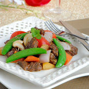 牛肉、洋葱、土豆、胡萝卜、小番茄、碗豆夹、蒜瓣、橄榄油、食盐、胡椒粉、香草碎、披萨草、黑醋、法式芥末、柠檬汁。