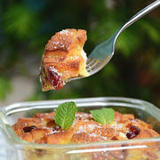吐司边条、鸡蛋、蛋黄、牛奶、糖、朗姆酒、香草精、杏仁、蔓越莓干、无盐黄油。