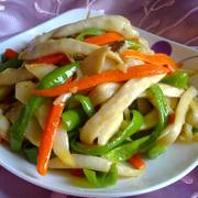 杏鲍菇、青椒、胡萝卜、大蒜、盐、蚝油、胡椒粉。