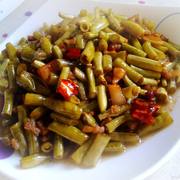酸豆角、五花肉、大蒜、干红椒、酱油。
