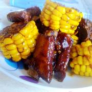 玉米、排骨、大蒜、生姜、干红椒、八角、盐、蔬之鲜、酱油、老抽。