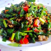 肉末、韭菜、大蒜、红椒、盐、酱油、蔬之鲜、老干妈豆鼓。