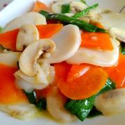 年糕、大蒜叶、胡萝卜、磨菇、盐、蔬之鲜。
