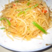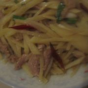 土豆、瘦肉、小米辣、干辣椒、葱、姜丝、盐、鸡精、香油、醋。