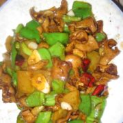 牛肉、青蒜、香菜 、野山椒、泡姜、朝天椒、蒜片、盐 、鸡精 、料酒 、淀粉、胡椒粉、香油。