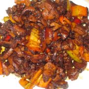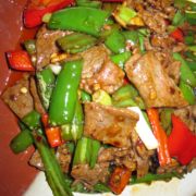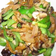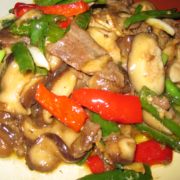 牛里脊、香菇、葱、辣椒、姜、大蒜、料酒、生、胡椒粉、盐、蚝油。