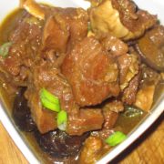 牛腩、香菇、八角、桂皮、香叶、老姜、大葱、盐、料酒、冰糖、老抽、生抽。