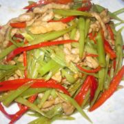 瘦肉、空心菜梗、红辣椒、大蒜、大蒜、淀粉、盐、料酒、生抽。
