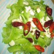 苦瓜、干辣椒、蒜、盐、花椒、白糖、白醋。
