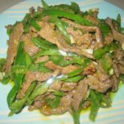 牛里脊、青椒、蒜、生抽、料酒、胡椒粉、淀粉、香油、盐。