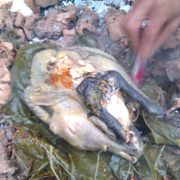 土鸡、荷叶、枯树枝、烧烤架、细绳子、高岭土、盐。