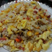 剩米饭、鸡蛋、火腿、胡萝卜、玉米粒、葱、食盐、鸡精、食用油。