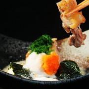 鸡腿肉、日式昆布高汤、红萝卜泥、大根泥、海苔、日本硬麻糬、绿色蔬菜、山药泥。