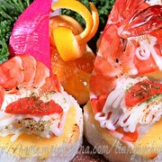 汆烫熟的虾、日本山药、芝士、日式沙律酱、盐、明太子、海苔粉。
