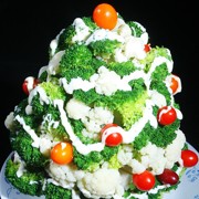 绿色西兰花、白色西兰花、水果白萝卜、小番茄、车厘子、橄榄油、盐、沙律酱、明太子、凉拌豉油、芝麻油、糖粉。