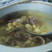 鲜虾、竹荪、蟹味菇、蛏子、葱花、白醋、胡椒粉、盐、味精、香油。