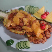 菠萝、猪肉、鸡蛋、生油、淀粉、盐、味精、茄汁、糖。