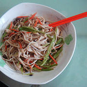 蟹味菇、香味菇、青椒、萝卜、花生酱、香油、味精、盐。